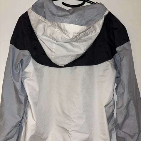 Nike Running juoksutakki, koko M. Musta väri, kevyt materiaali. Soveltuu juoksuun ja muuhun liikuntaan. Hihassa valkoinen maali tahra ks. Kuva