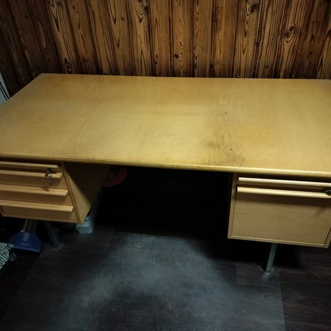 Myyn valkoisen Unipuun työpöydän ja siihen kuuluvan, pyörillä olevan laatikoston.