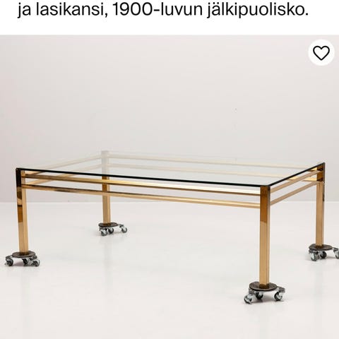 Tyylikäs retro messinkinen lasipöytä myytävänä. Yleiskunto hyvä. Runko ehjä ja tukeva. Tarvittaessa purettavissa. Lasi siisti. Parissa kulmassa pienet kolhut. Rungossa muutamia ajan jälkiä.