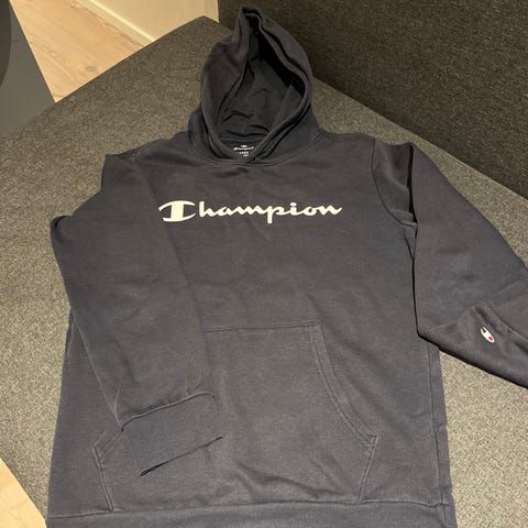 Champion valkoinen huppari. Materiaalikoostumus: 51% puuvillaa ja 49% polyesteriä.