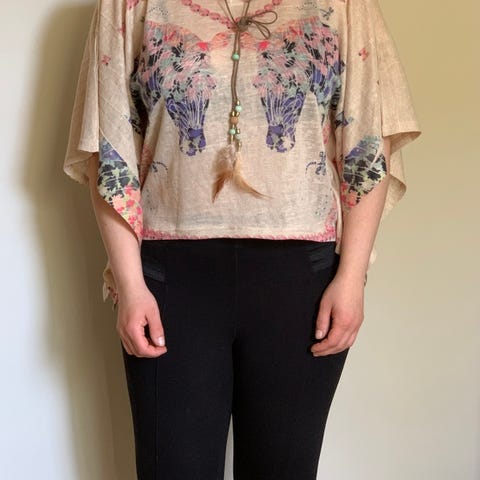 Valmistettu puuvillasta 80 % ja pellavasta 20%. Edessä on teksti 'WILD LOVE'.