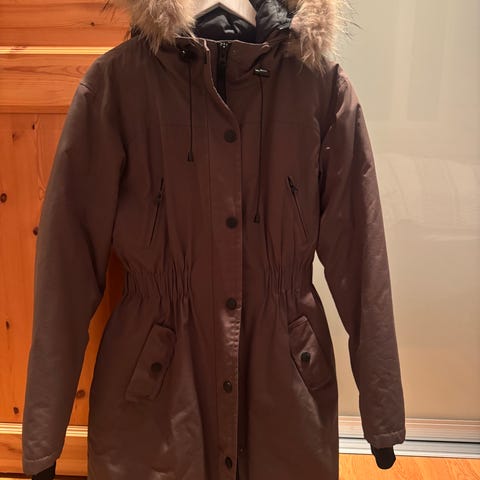 Modström parka. Koko XL. Harmaanvihertävä. Pituus 91 cm ja kainalo-kainalo 54 cm. Irrotettava huppu. Puuvillaa. Vanha mutta hieno! 5 eur.