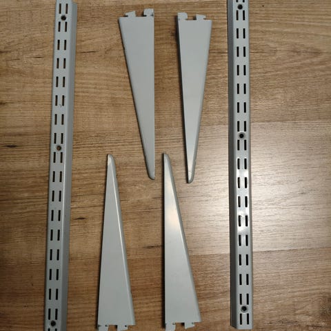 Annetaan yhteensä 9 kpl ritiläkoreja kiskoineen. Kahta eri mallia 4 x isompiruutuisia, joissa metalliset kiskot ja 5 x pienempieuutuisia, joissa muoviset kiskot. Kysy mittoja tarvittaessa.