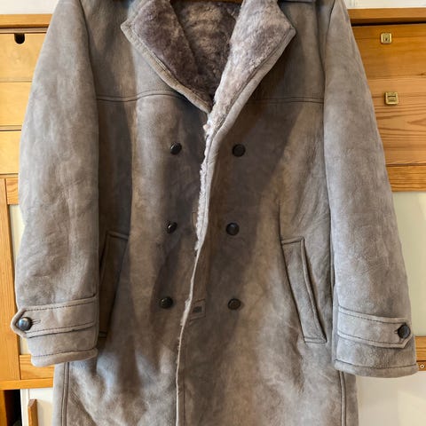 Vanha, mutta hyvässä kunnossa oleva turkki. Valmistajasta tai materiaalista ei ole tietoa, mutta pitäisi olla aitoa karvaa ja nahkaa. Koko ehkä L, tarkempia mittoja saa kysymällä.
