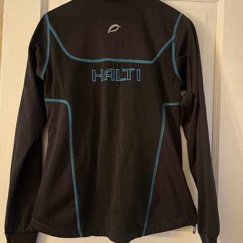 Naisten hyväkuntoinen punainen Halti softshell takki, koko 42. Kaksi etutaskua, sivuilla vetoketjut tuuletusta varten. Helmassa kiristysmahdollisuus.