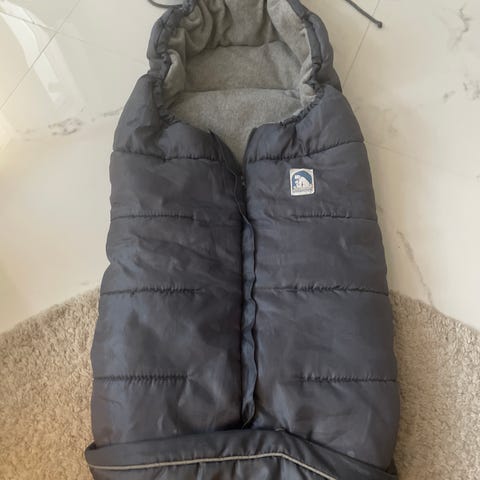 Paksu Eisbärchen lämpöpussi vaunuihin tai rattaisiin kylmille keleille. Makuupussi on moitteettomassa kunnossa, ainoastaan pesulapusta huomaa että on ollut käytössä, kun teksti siinä hiukan haalentunut.