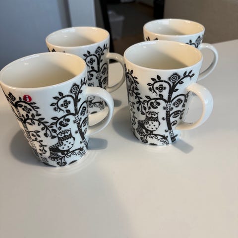 Iittala Taika mukit, 2 kappaletta, mustavalkoinen koristelu. Mukit soveltuvat kuumille ja kylmille juomille. Valmistettu kestävästä materiaalista, sopivat arkikäyttöön.