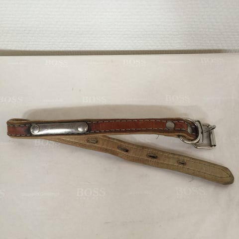 Nahkainen panta. Panta pienimmillään 28 cm ja leveys 3,5 cm
