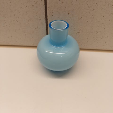 Marimekko koriste-esine valkoisesta lasista. Esineessä on pyöreä muoto ja se soveltuu sisustukseen tai koristekäyttöön.