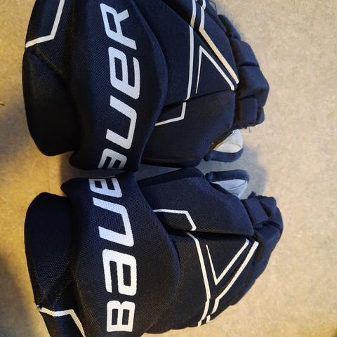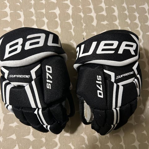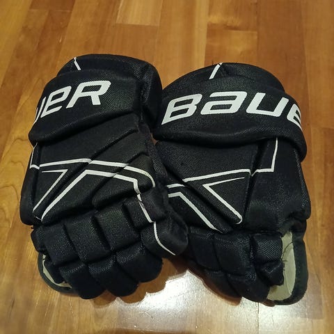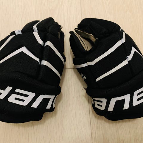 Bauer Nexus jääkiekko-hanskat, mustat 11". Kämmenissä tahraa, mm. punaista maalia.