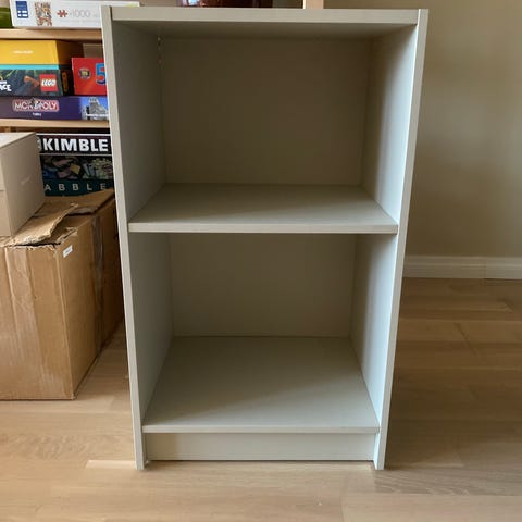 Valkoinen IKEA yöpöytä.