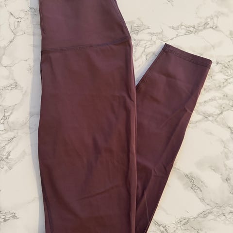 Gymnationin normaalilahkeiset ja korkeavyötäröiset housut, väri plum, koko M. Siisti käytetty kunto (ks. kuvat saumoista ja painatuksesta). Jääneet itselle liian suuriksi, rypyt säilytyksen jäljiltä.