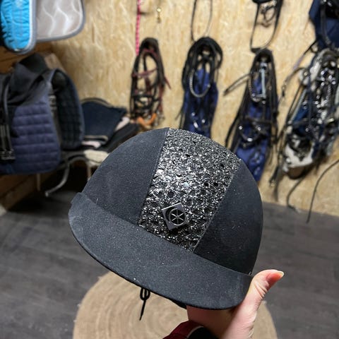 Charles Owen kypärä musta väri, koko 58. Valmistettu kestävistä materiaaleista, sopii turvalliseen käyttöön ratsastuksessa.