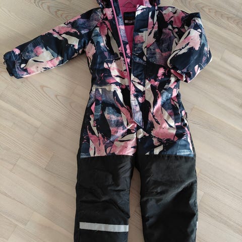 Lassie vedenpitävä talvihaalari, koko 110. Haalarissa on vaaleanpunainen yläosa toppaa ja musta alaosa kurahousukangasta. Materiaali on polyesteriä. Haalari on suunniteltu ja valmistettu Suomessa.