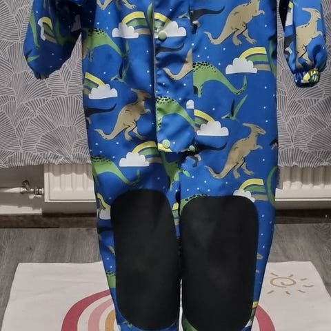 Jonathan lasten kurahaalari, koko 92. Haalarissa on sininen raidallinen kuosi ja soveltuu tarjoamaan suojaa ja mukavuutta erilaisissa sääolosuhteissa. Kunto on muutamaa väritahraa lukuunottamatta erinomainen.