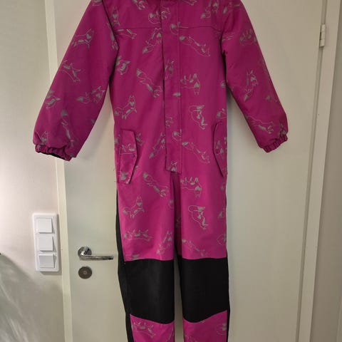 Yhdellä lapsella ollut, mutta vielä hyvässä kunnossa oleva metsän vihreä toppahaalari. Toisessa lahkeessa lenksu puuttuu. Pieniä kulumisen jälkiä, mutta ehjä haalari. Tosi lämmin ja reilu koko. Meni vielä 140-146cm kokoisenakin.