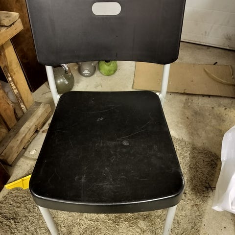 Musta tuoli. Pehmustettu istuinosa.