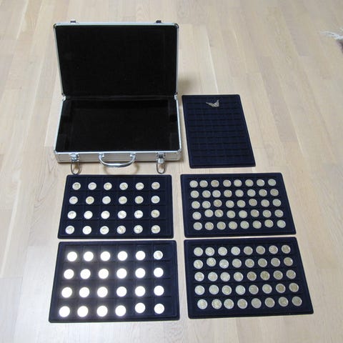 Kierrosta kerätyt 2 euron erikoisrahat 128 kpl (arvo 256 €) + salkku