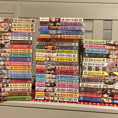 Myydään One Piece mangasarjan osat 1-102. Kirjoja 98 on myynnissä vain yksi kappale, vaikka kuvassa näkyy kaksi kappaletta. Kaikki kirjat hyvässä kunnossa. Kielenä suomi.