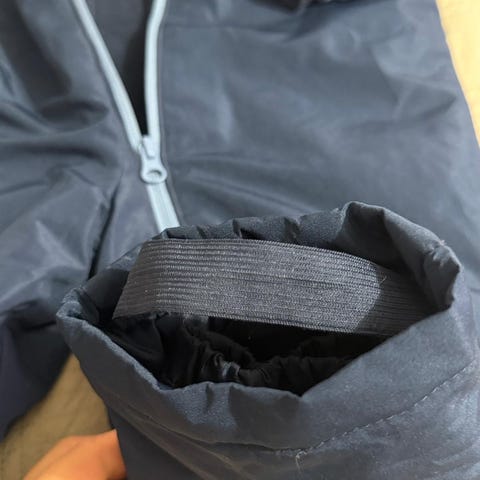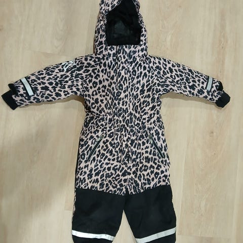 Jonathanin 92 kokoinen talvihaalari karhukuosissa. Pehmentymää ja naarmuja polvien paikkeilla, mutta kangas ehjä.