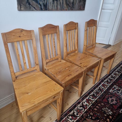 Kätevät pieneenkin tilaan mahtuvat mäntytuolit. Istuin korkeus 43cm ja koko korkeus 80cm.