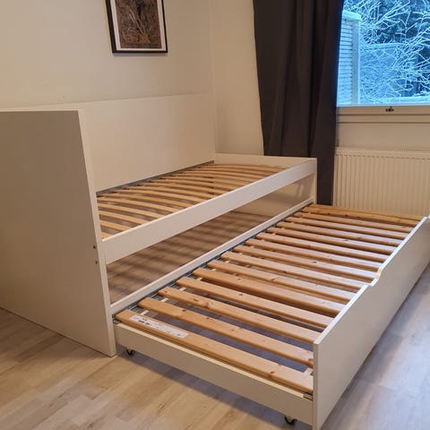 Siistissä kunnossa, yksi metallikiehkura pätkä n.20cm puuttuu oikeasta puoleisesta nojasta.