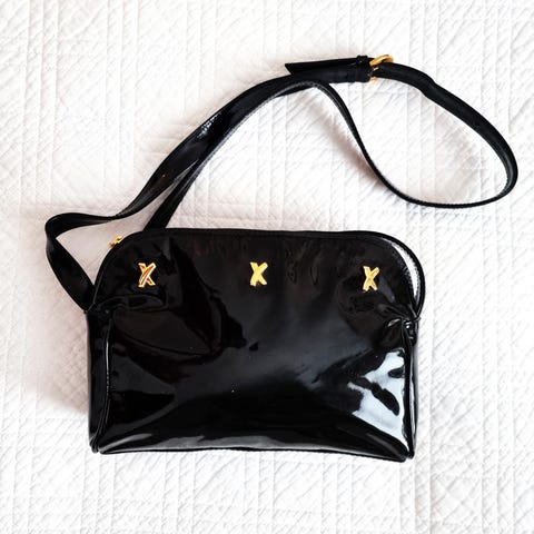 Näyttävä Gabrielle BY P -merkkinen olkahihna laukkuun, vegaanista nahkaa hopeisilla yksityiskohdilla. Pituus 105 cm (metallikiinnittimien kanssa), leveys 4 cm.
