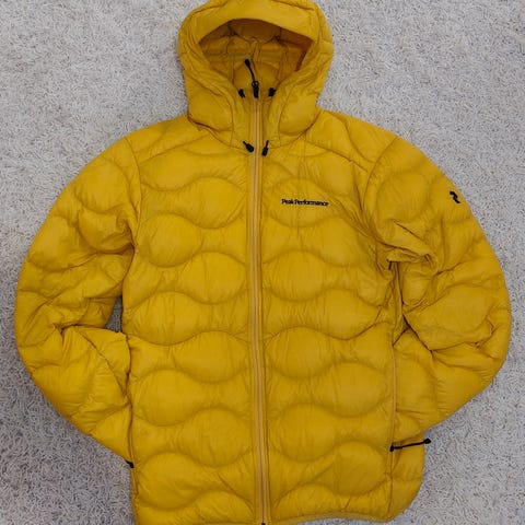Peak Performance pitkä kevytparkatakki sinisessä värissä, koko L. Valmistettu polyesteristä.