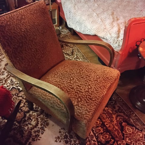 2kpl K-nojatuolia, verhoiltu ja kunnostettu. Kunnostuksesta huolimatta toisen nojatuolin käsinojat hieman lonksuvat, ovat kyllä hyvin kiinni. Tuolit ovat pienikokoiset, istuinkorkeus on 38-40 cm. Verhoilukangas, petroolin värinen, on Lauritzonin, laadultaan erinomainen ja kunnoltaan kuin uusi. Tuolit ovat perheeni hankkimat 40-luvun loppupuolella.