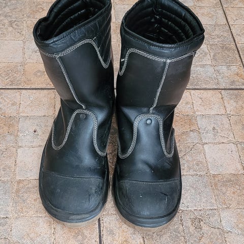 Myynnissä käytetyt nahkasaappaat, koko 45, mukaan sisäkengät. Pohjat tarvitsevat suutarin käsittelyä.