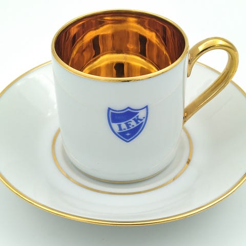 Hutschenreuther IFK kahvikuppi ja lautanen kulta valkoinen posliini