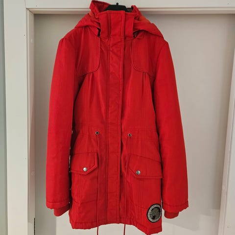 Vilan toppatakki irrotettavalla hupulla ja vyötärön kiristysnyörillä.