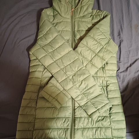 Käytössä ollut. Ainoana miinuksena on pienet reiät, joita on takin etuosassa, helmassa sekä hihansuissa. Kuvat näistä erikseen.