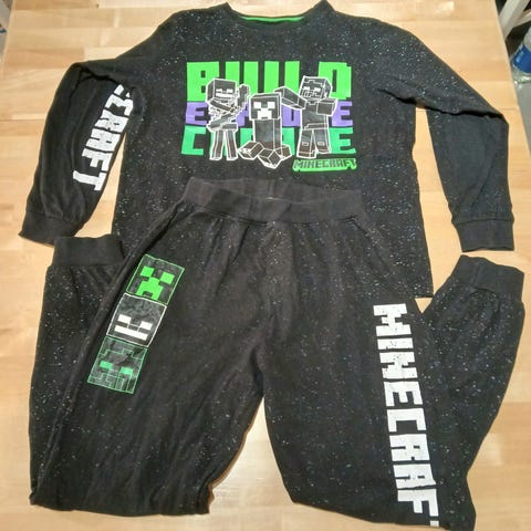 Myydään Minecraft yöasu, t-paita ja shortsit. Ehjät, mutta jo käytetyn näköiset.