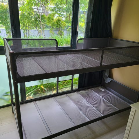 Kuvanmukainen Ikean Vitval kerrosänky 90cm×200cm. Ostettu alunperin käytettynä eläintaloudesta, mutta osat pesty huolellisesti toimestamme ennen käyttöönottoa. Kokoamisohjetta meillä ei ole, mutta Ikean suvuilta löytyy kasaamisohje, jota käytimme.