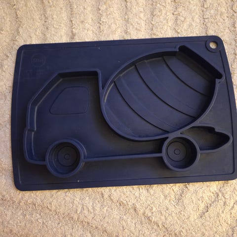 Annetaan, lasten ruokailualusta ja jaettu lautanen, harmaa väri. Valmistettu materiaalista, joka soveltuu lasten ruokailuun ja auttaa annosten erottelussa.