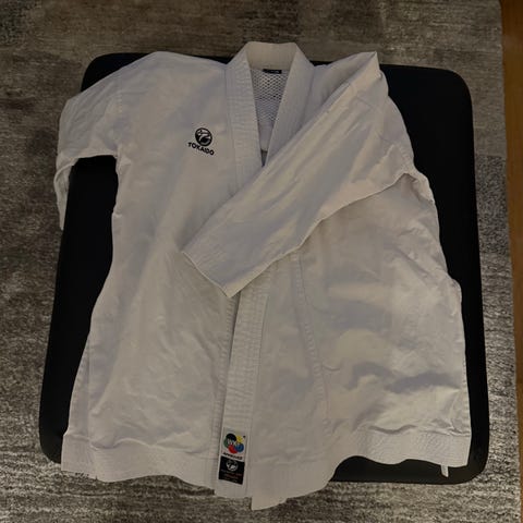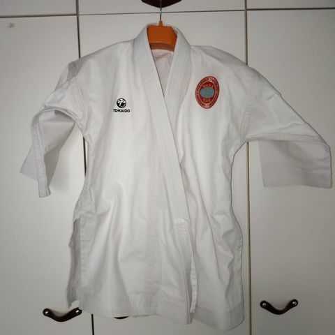 Tokaido kata master junior karatepuku, koko 160cm. Puku kutistunut hieman pesussa, mitat näkyvät kuvassa. Hinta 35eur.