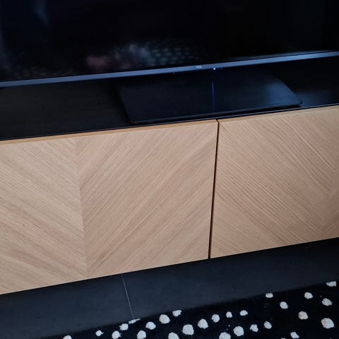 Päällä tamminen päällilevy myös Ikeasta. Ei hyllyjä. Oikean puolimmaisessa ovessa kolhu n 2cm. Muuten tosi siisti. MobilePay.