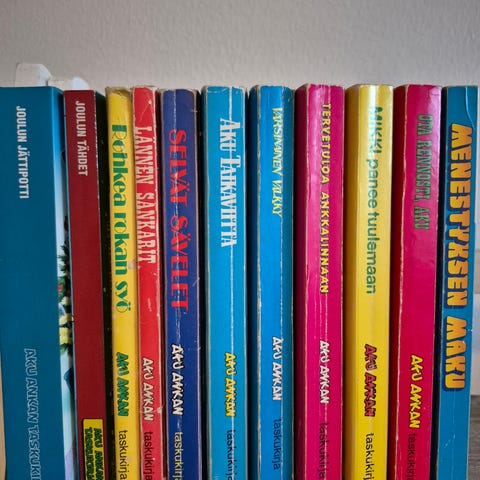 Lapsi myy vanhoja Aku Ankkoja. Osa taskupokkareita ja osa kovakantisia kirjoja. Osan kunto lähes uudenveroinen ja osa enemmän luettuja.