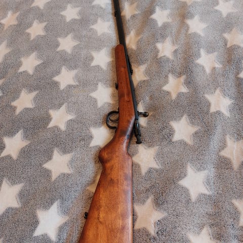 Pienoiskivääri. Hyvässä kunnossa, tarkka ase, ollut kiikari päällä. Ponnessa lisäpala, korotus.