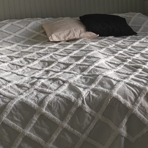 Myydään musta päiväpeite valkoisilla vetoketjuilla; koko 80x200cm noin 10cm paksuiseen patjaan. Sisäpinta nukkainen, muuten hyvässä kunnossa.