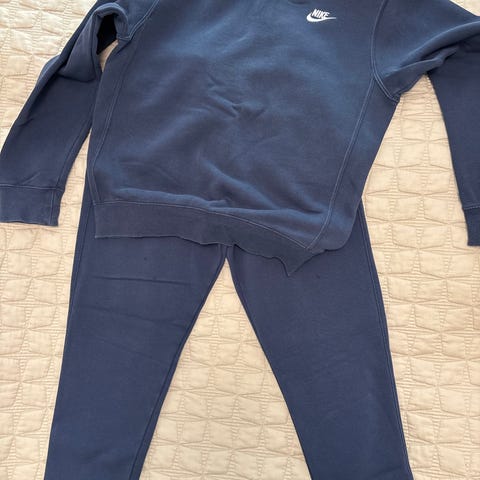 Nike miesten huppari ja housut setti sinisenä väriltään, koko S. Setti sisältää hupparin ja ja housut, jotka soveltuvat arkikäyttöön tai liikuntaan.