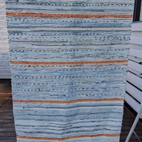 Kangaspuissa napakasti kudottu matto, 100% puuvillaa,