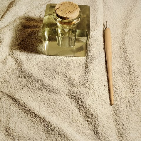 Metallia, hopeoitu, 1900-luku, syvennys mustekynälle.