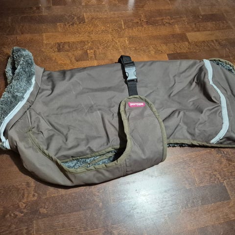 Muutaman kerran käytetty, kuin uusi lämmin Pomppa. Myydään, koska on omalle koiralle liian suuri.