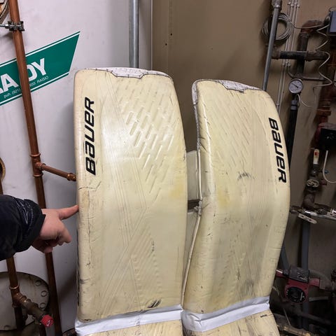 Bauer ultrasonic patjat, koko L 35+1, halutessa mukaan Bauer Pro lisäpolvisuojat, jotka tarvii vähän ompelua kuminauhaan