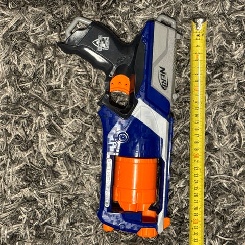 Nerf Stryfe n-Strike Elite pehmoammusase kolmella lippaalla. Myytävänä myös nuolia. Sisä- tai ulkokäyttöön.