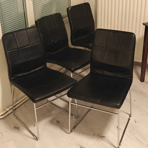 Four free Ikea leather chairs with scratch marks. The chairs are otherwise in great shape and the leather can be changed because they are held with velcrow. No delivery, only pick up please.