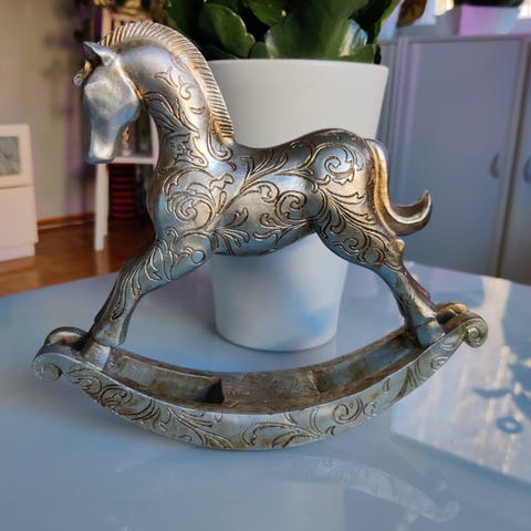 Hevonen on aika painava, joten uskon että materiaali ei ole puuta.