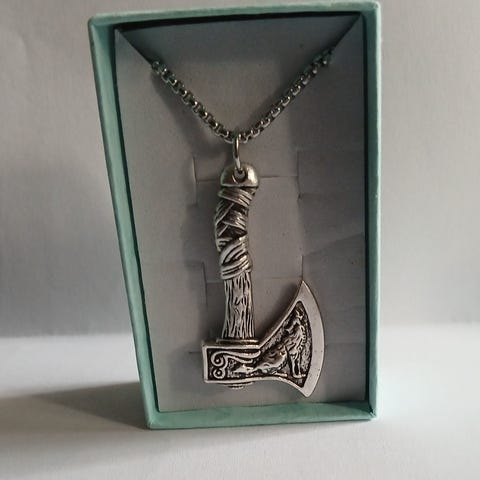 Pronssinen jykevä Thorin vasara kaulakoru erittäin pitkällä n. 128 cm ketjulla. Ostettu Norjalaisesta kultasepänliikkeestä, rasia mukana. Riipuksen koko n. 3,5 x 3 cm.